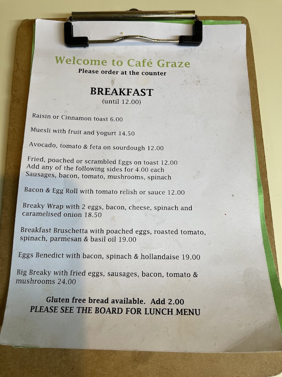 Cafe Graze Menu